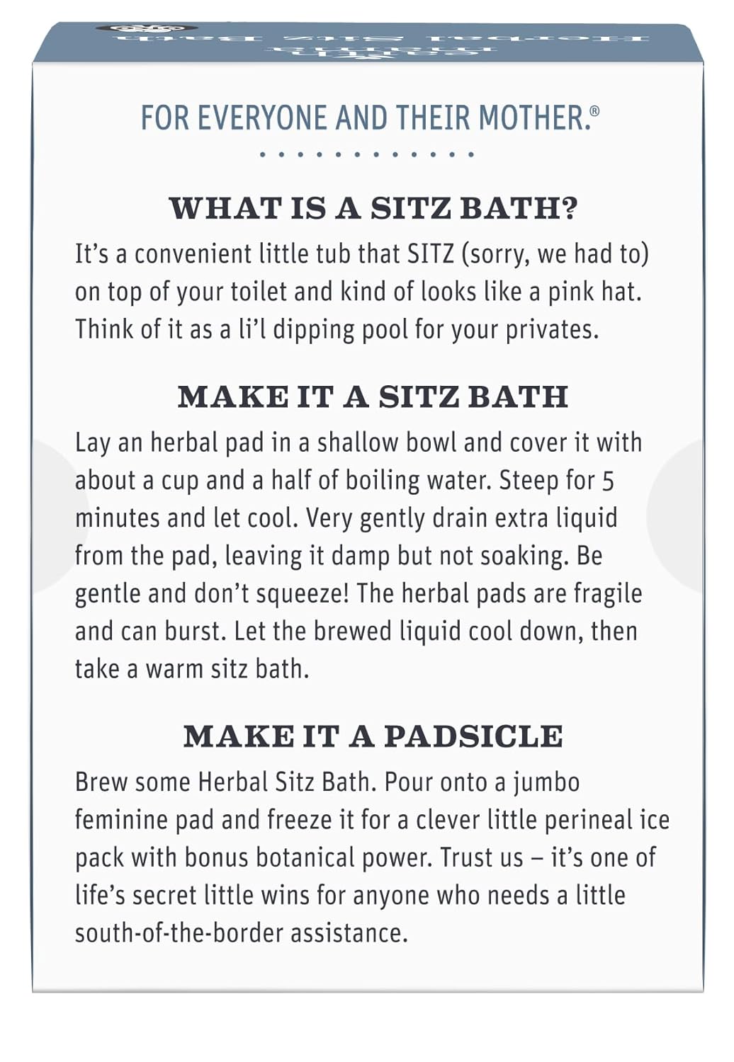 HELPFUL TIPS: Use the extra herbal sitz bath solution to make postpartum padsicles or pop the brewed herbal sitz bath compresses into the fridge to cool, then apply directly to your nether region.